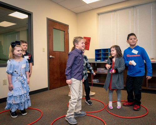 Our Elementary kids experience large and small group environments on Sunday mornings. They gather with all elementary kids for a large group in Room 212 where they'll hear a Bible Story lesson and activity for that day's teaching. It's high-energy, kid-friendly, and kid-focused.