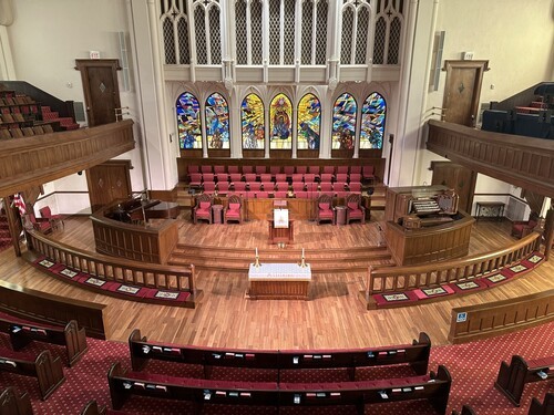 Polk Street's sanctuary is one of the most beautiful and historic among Texas panhandle Christianity. Our 1928 Sanctuary includes impressive stained glass, a large balcony, beautiful dark woodwork, ornate stone and plasterwork, and a notable pipe organ. Although some of these facility elements may seem intimidating, each of them is designed to inspire worship of God, remind us of God immanence, and draw us into God's presence.